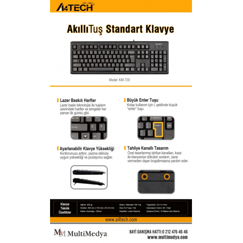 A4 Tech KM-720 Q Usb Standart Siyah Klavye