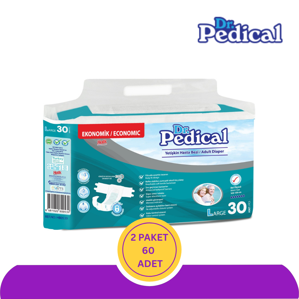 Dr. Pedical Belbantlı Yetişkin Hasta Bezi, özellikle ihtiyacı olan bireyler için tasarlanmış yüksek kaliteli bir üründür. Gelişmiş teknolojisi ve konforlu yapısıyla, bağımsızlığı korumak ve günlük yaşam kalitesini artırmak amacıyla üretilmiştir. Bu ürün, büyük (L) bedeni ile hem erkekler hem de kadınlar için uygundur ve 60 adetlik ambalajda (2x30) sunulmaktadır.